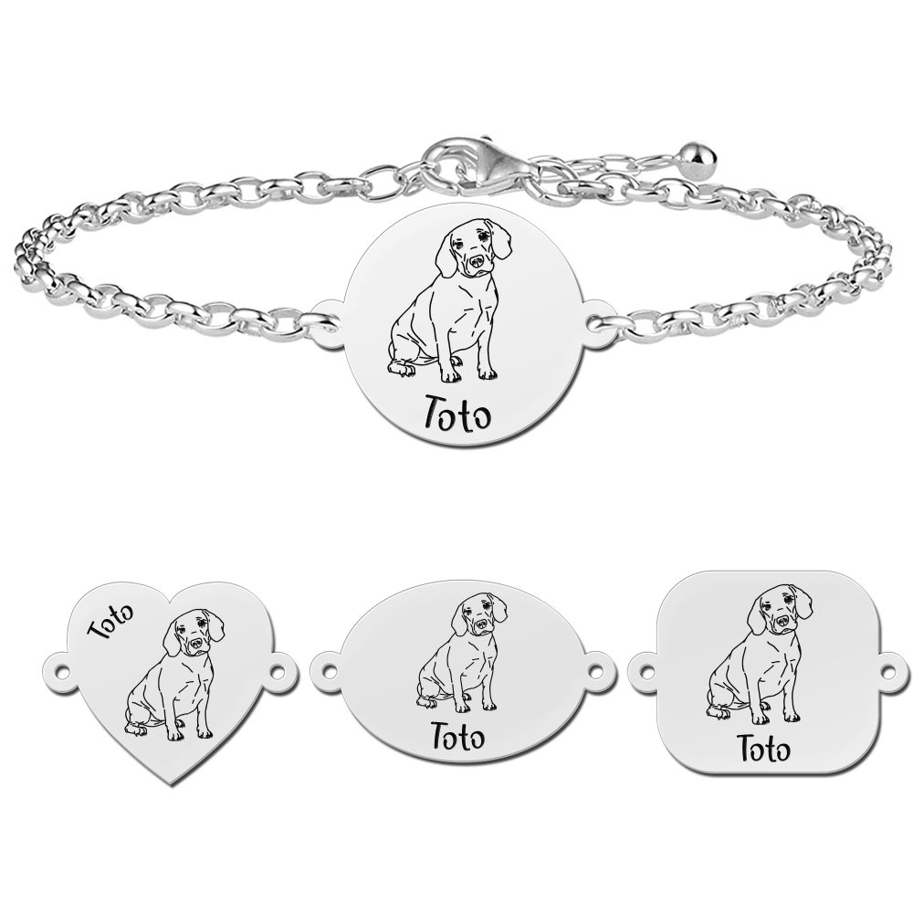 Onze honden bracelet is een mooi sieraad met een naam verwerking. Graveer de naam van je hond en draag hem zo altijd bij je. Beagles zijn al eeuwenlang een van de meest populaire honden ter wereld. Je was waarschijnlijk al snel verliefd op jouw Beagle omdat hij altijd vrolijk en sociaal is. Hierdoor is het echt een allemansvriend. Het zijn kleine honden met een korte en platte vacht. Een Beagle werd vroeger veel gebruikt als jachthond en hij heeft dan ook de typische kleuren van een jachthond, namelijk wit, bruin en zwart.