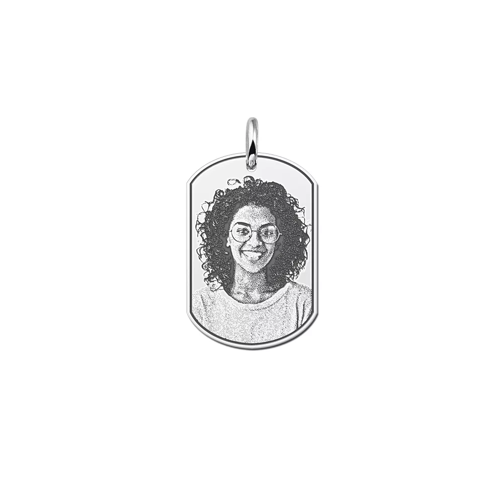 Een dogtag foto hanger in 925 sterling zilver bijzonder mooi design voor mannen. Een discrete en toch in het oog springende hanger met een geweldige herinnering. Wil je de ketting cadeau geven? Dat komt mooi uit! Je ontvangt deze namelijk in een mooi sieradendoosje.