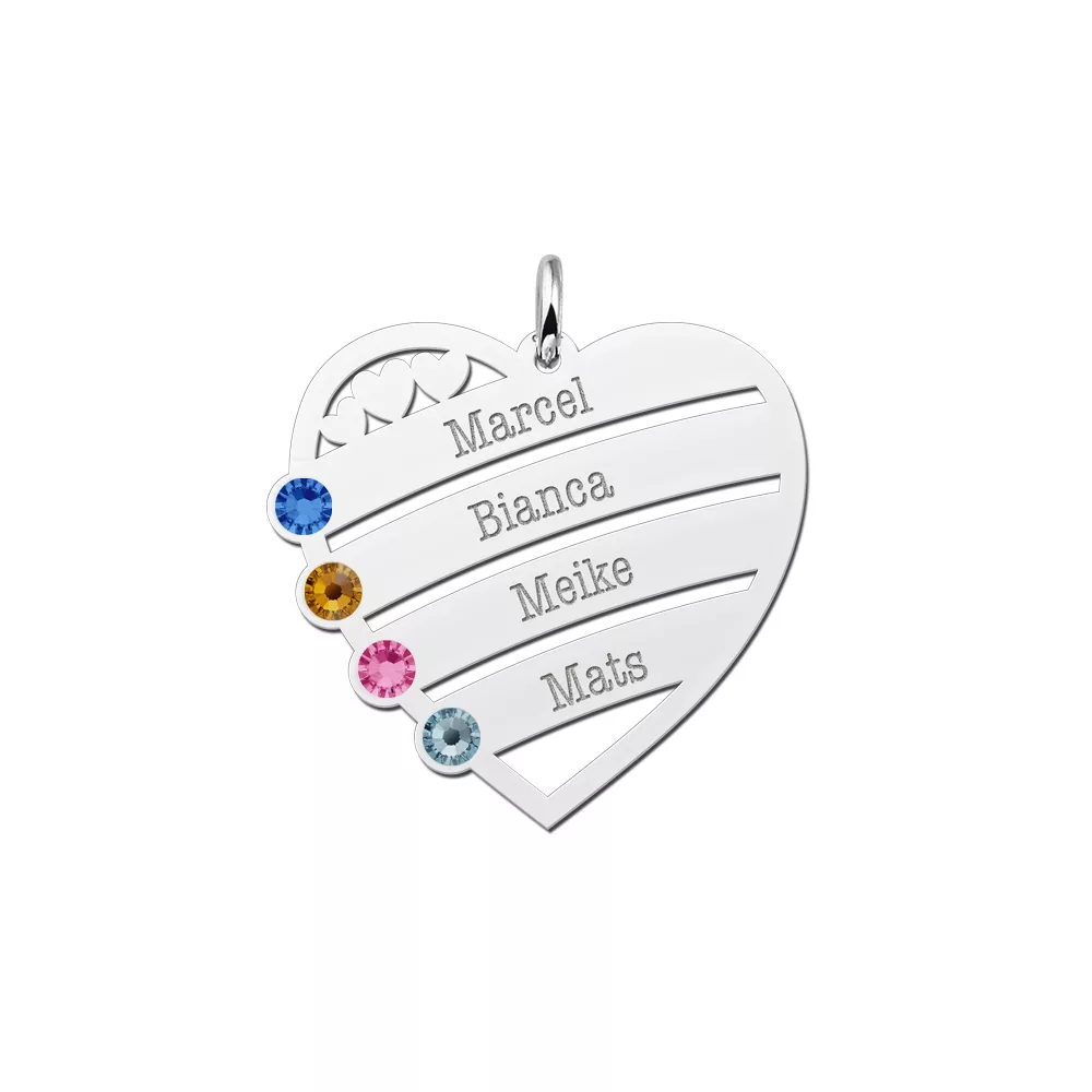 Steel de show met deze 925 Sterling zilveren geboortesteen hanger die je kunt laten personaliseren met vier gravures en vier geboortestenen.