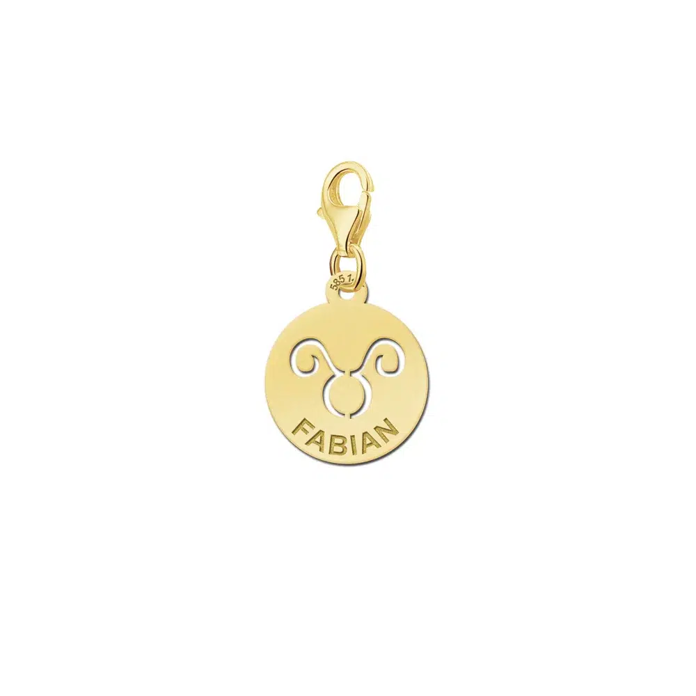 Het zodiac symbool van de stier en de naam van jouw keuze wordt in dit mooie gouden bedeltje gegraveerd.