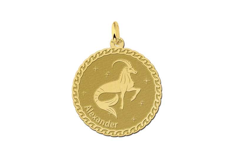 Op deze sieraad is het sterrenbeeld Steenbok gegraveerd. De Steenbok geborene is een mens met een praktische en zakelijke wil.