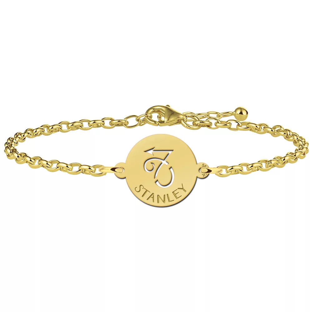 De armband is gemaakt van 14 karaat goud en kan gepersonaliseerd worden met een naam.