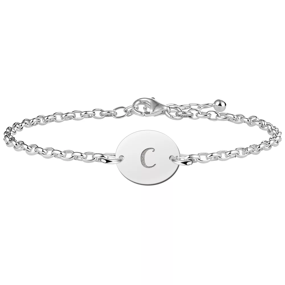 Deze zilveren armband met letter heeft de vorm van een ovaal en is zowel eenvoudig als elegant. De armband is gemaakt van 925 Sterling zilver en kan gepersonaliseerd worden met een letter naar keuze.