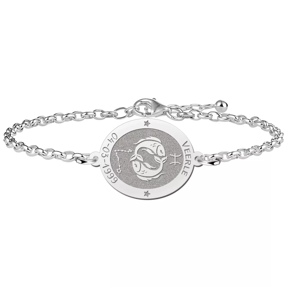 Is jouw sterrenbeeld Vissen? Dan is deze zilveren armband met het sterrenbeeld Vissen perfect geschikt voor jou. De armband is gemaakt van 925 Sterling zilver en kan versierlijkt worden met een persoonlijke gravure; aan beide kanten.