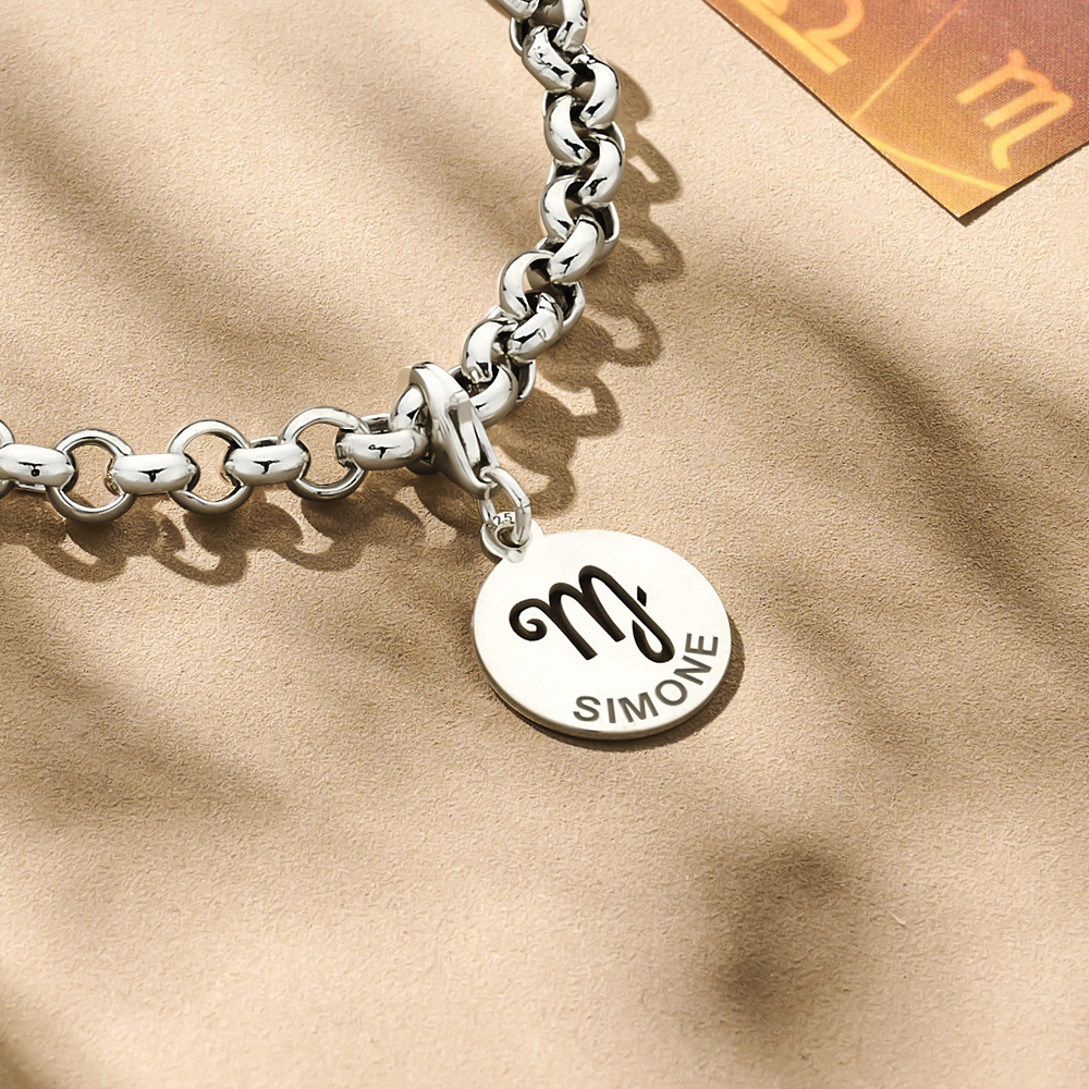 Zilveren zodiac bedel met het symbool maagd. Maagd: 23 aug – 22 sept. Deze zodiac bedel heeft een diameter van ca. 14mm en wordt geleverd inclusief een karabijnhaak waardoor deze gemakkelijk aan je armband gedragen kan worden.