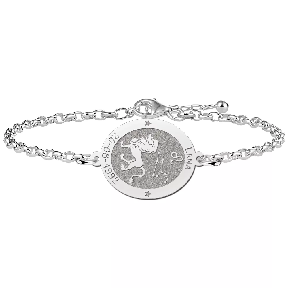Deze zilveren armband met het sterrenbeeld Leeuw is een echte eye-catcher en perfect geschikt voor een hij of zij die Leeuw is. De armband is gemaakt van 925 Sterling zilver en kan versierlijkt worden met een persoonlijke gravure; aan beide kanten.