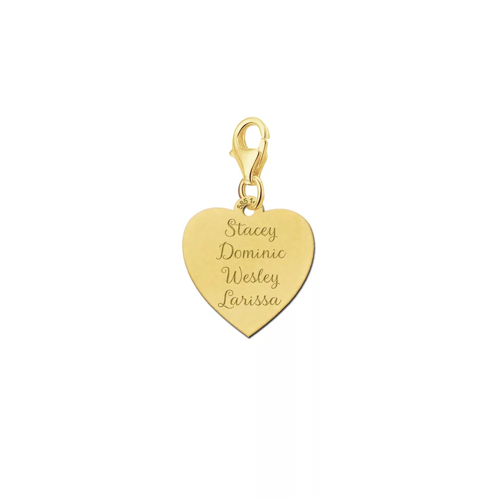 Dit hart hangertje van goud bied plaats om vier namen in te graveren. Deze hanger heeft een afmeting van 16 mm bij 17 mm en is mooi afgewerkt.