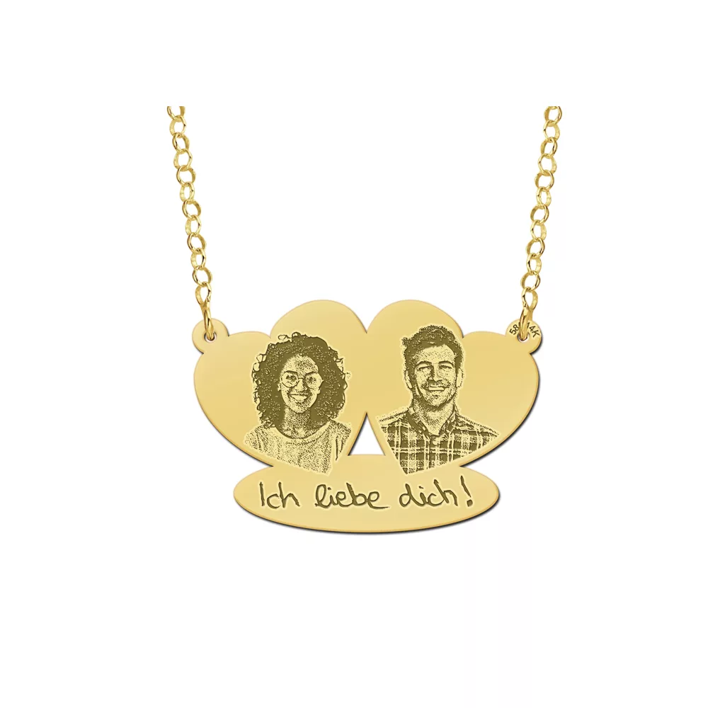 Deze dubbele harthanger kan worden gepersonaliseerd met twee foto’s en uw eigen handschrift.