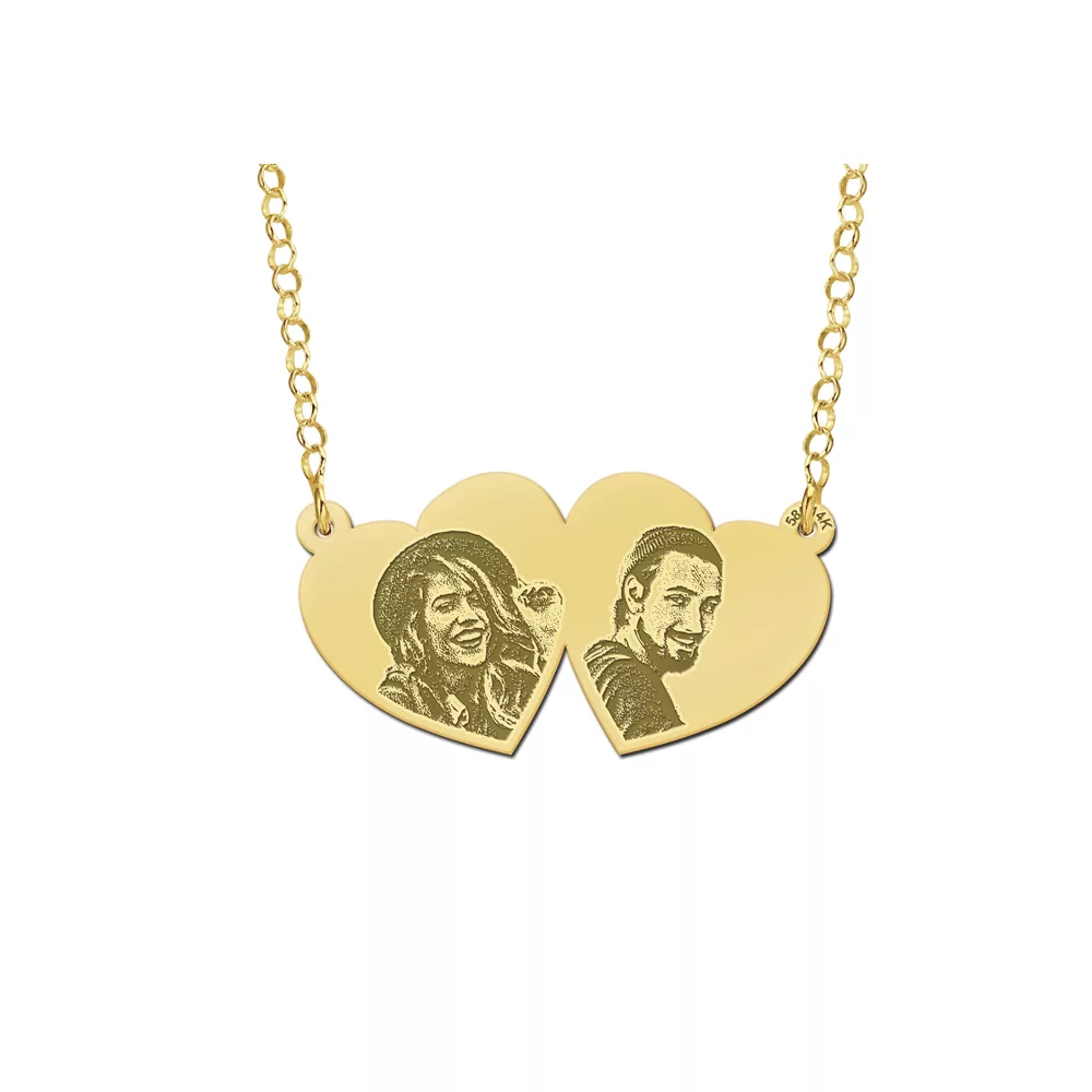Deze dubbele harthanger kan worden gepersonaliseerd met twee foto’s.