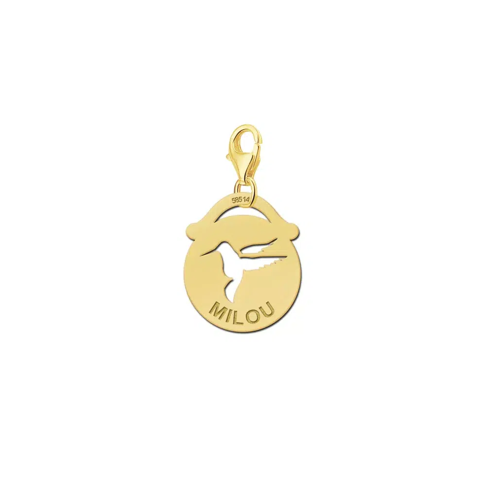 In deze gouden Tiffany style dieren charm met daarin een kolibri wordt de naam van jouw keuze.