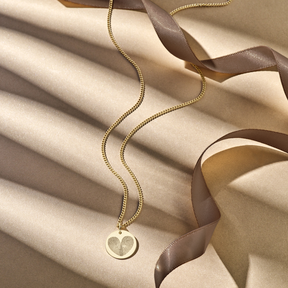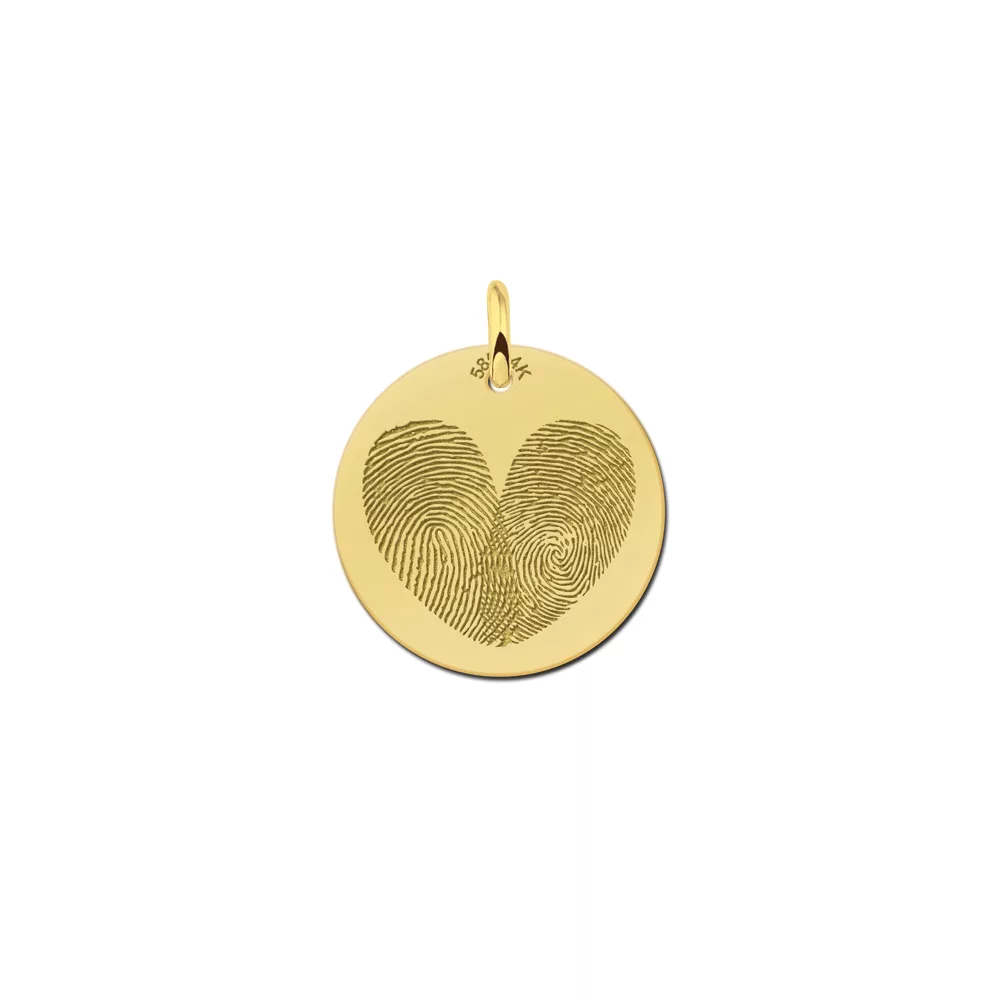 Gouden hanger met twee vingerafdrukken in hartvorm