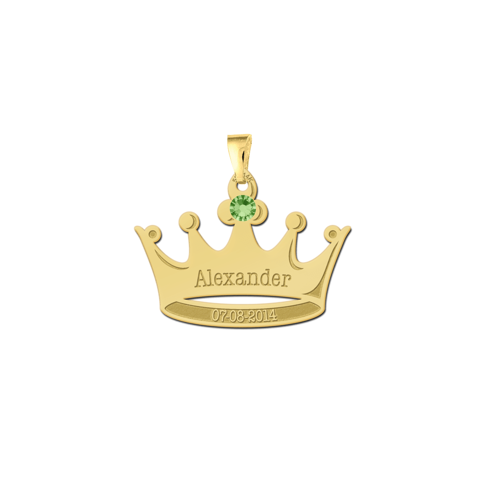 Deze 14 karaats gouden kroon met geboortesteen is wel een hele speciale hanger.
