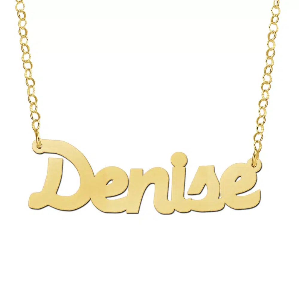 Deze naamketting Denise is gemaakt van 14 karaats goud. Het is een prachtig sprekende letter met een karakteristieke vorm. Met deze gouden naamketting Denise weet je zeker dat je er oogverblindend uit ziet. De naamketting van goud is bevestigd aan een jasseron schakel collier van 42 cm. Je kunt jezelf verwennen met deze gouden naamketting model Denise, of je geeft deze naamketting van goud cadeau. Is dit niet het lettertype wat je zoekt? Dan hebben wij nog veel meer andere soorten voor je!