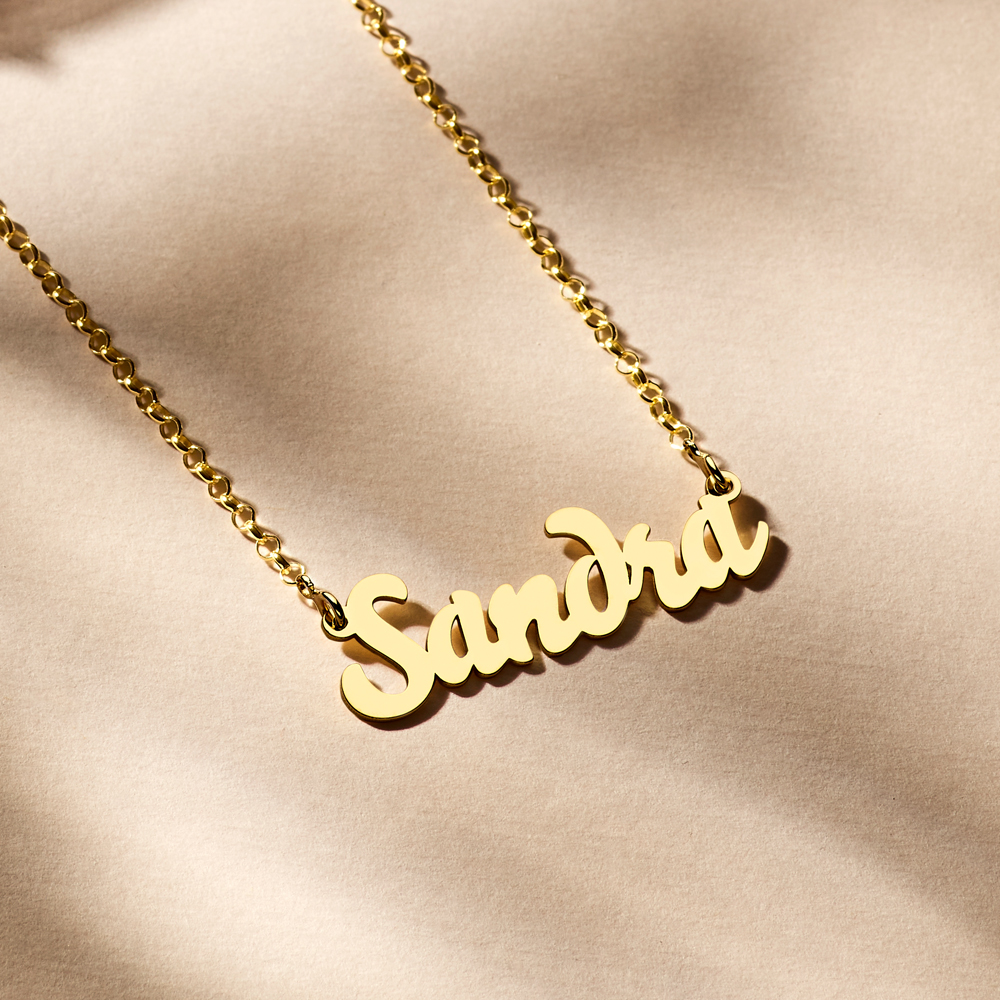 De uitstraling van deze gouden naamketting model Sandra is nogal speels.