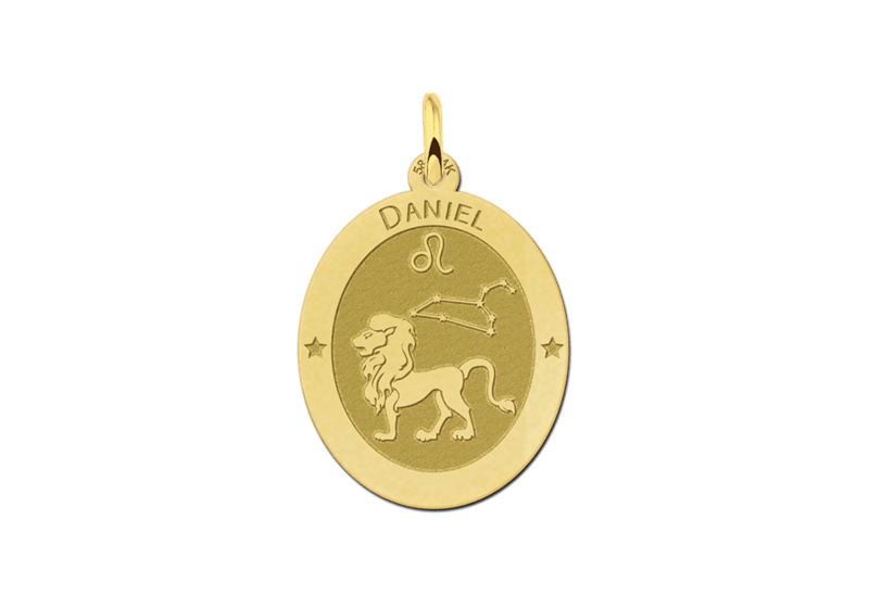 Met een bijpassende gouden ketting is de sterrenbeeld-hanger compleet. Geef deze ovalen hanger met persoonlijke gravering cadeau en maak een onvergetelijke indruk.