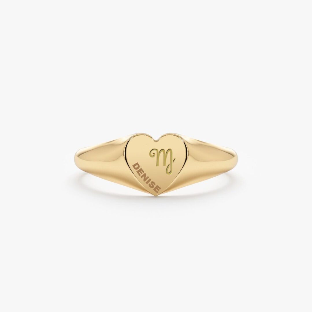 Ben je geboren tussen 23 augustus en 22 september en dus een Maagd? Bekijk dan eens deze mooie zegelring met het sterrenbeeld-symbool Maagd. De zegelring is gemaakt van 14 Karaat goud en kan gepersonaliseerd worden met een naam.