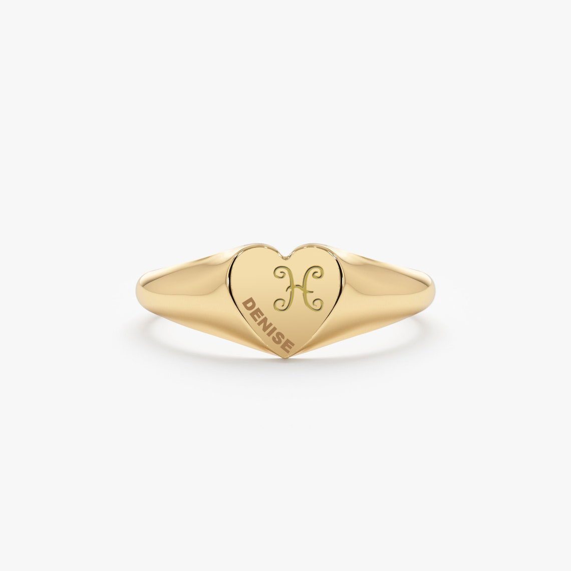 Gouden zegelring hartvorm met horoscoop en gravure – Vissen
