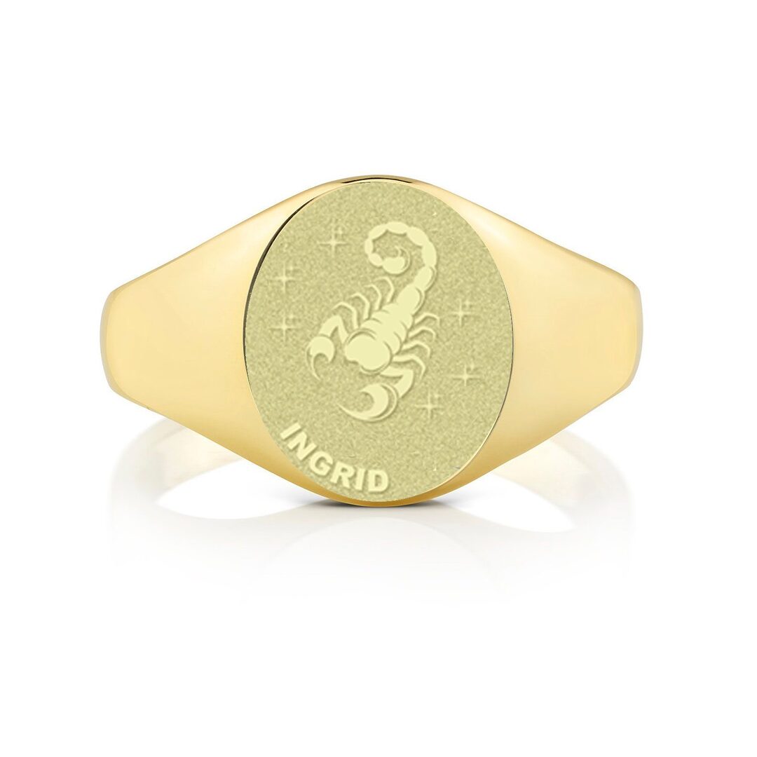 Deze ring is speciaal gemaakt voor iemand met dit sterrenbeeld; iemand die is geboren tussen 23 oktober en 21 november. Vooral, omdat er ruimte voor een naam of datum is. De naam of geboortedatum van degene met dit sterrenbeeld natuurlijk! En met ruimte tot 12 tekens, is bijna elke naam mogelijk!