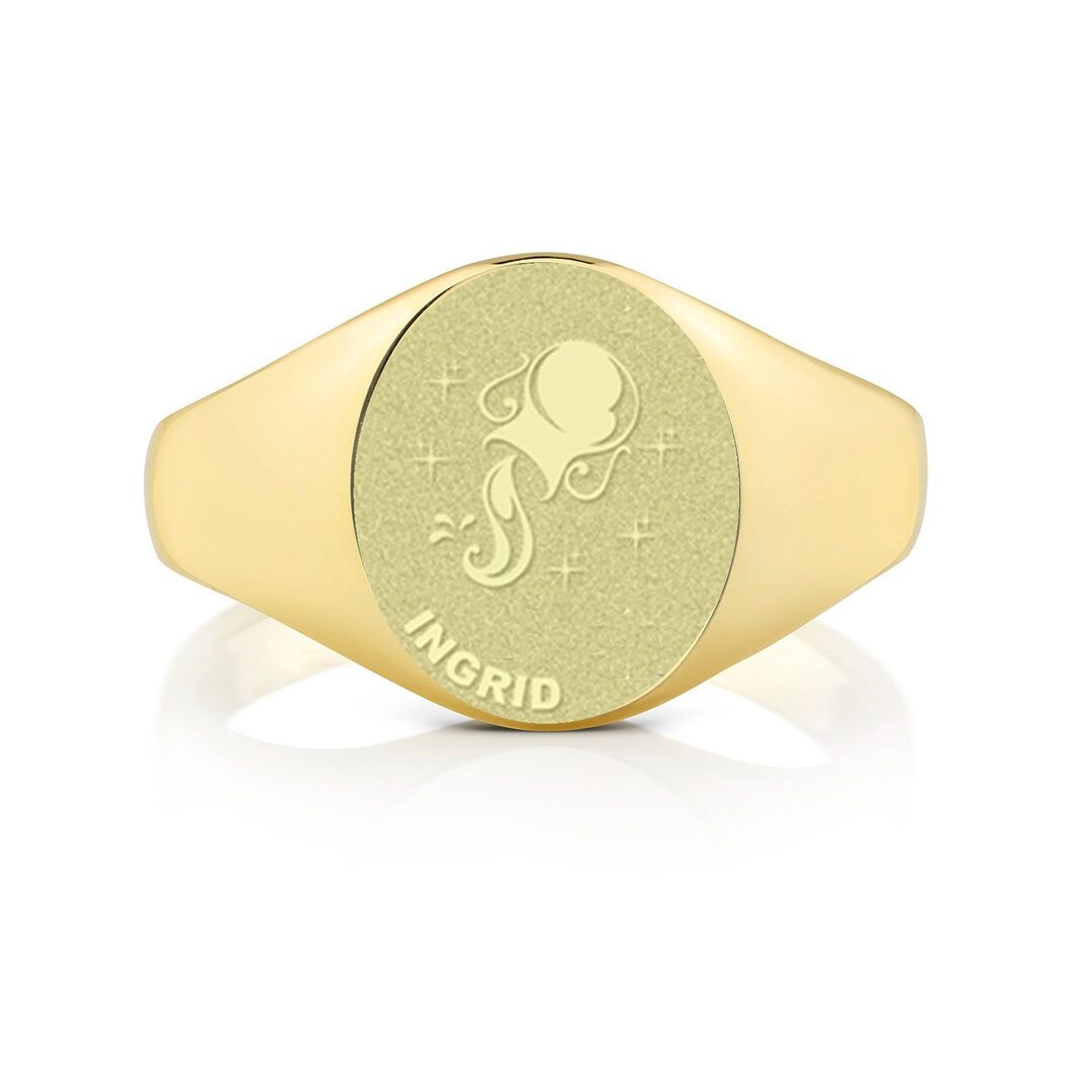 Gouden zegelring ovaal met horoscoop en gravure – Waterman