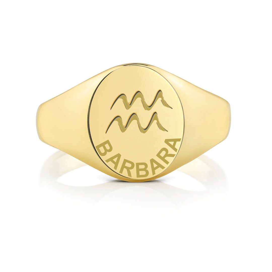 Gouden zegelring ovaal met sterrenbeeld en gravure – Waterman