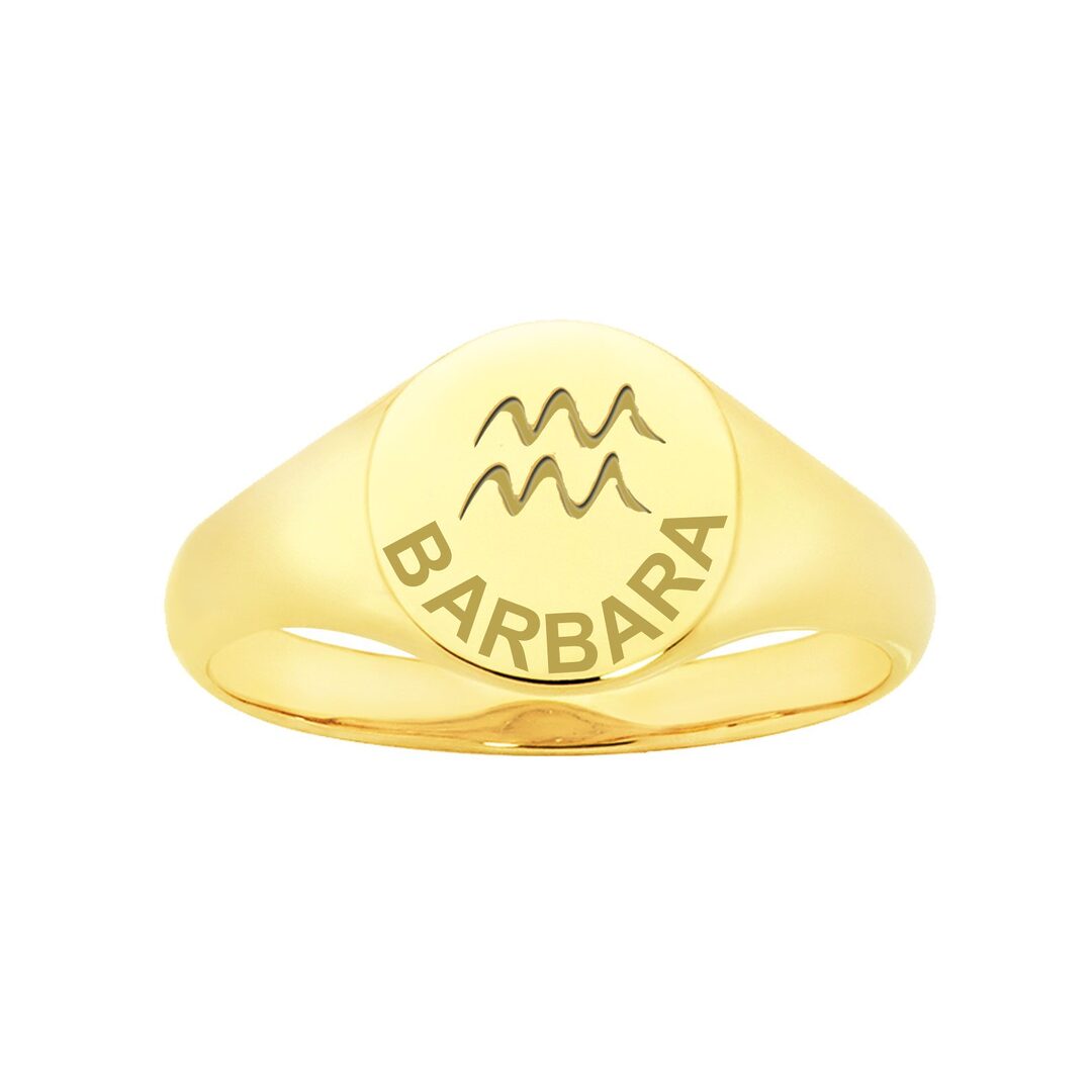 Deze ring is speciaal gemaakt voor iemand met dit sterrenbeeld; iemand die is geboren tussen 20 januari en 18 februari. Vooral, omdat er ruimte voor een naam of datum is. De naam of geboortedatum van degene met dit sterrenbeeld natuurlijk! En met ruimte tot 8 tekens, is bijna elke naam mogelijk!