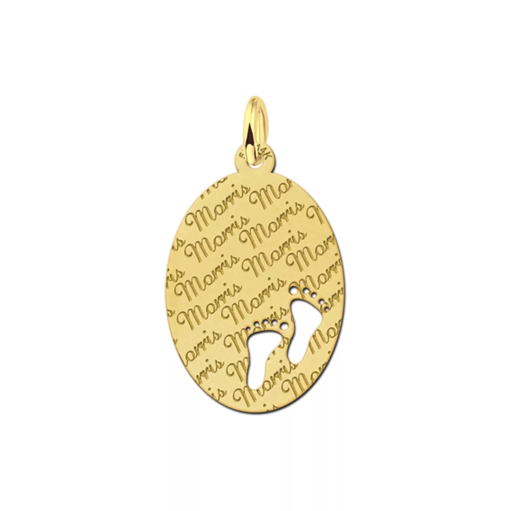 Wij graveren voor jou in jouw uitgekozen gouden naamplaatje !! Heb jij gekozen voor dit modieuse naamplaatje van goud ? Dan kunnen wij daar de naam van jouw keuze in graveren. Het is een charmant naamplaatje van goud met twee schattige voetjes erin bewerkt.