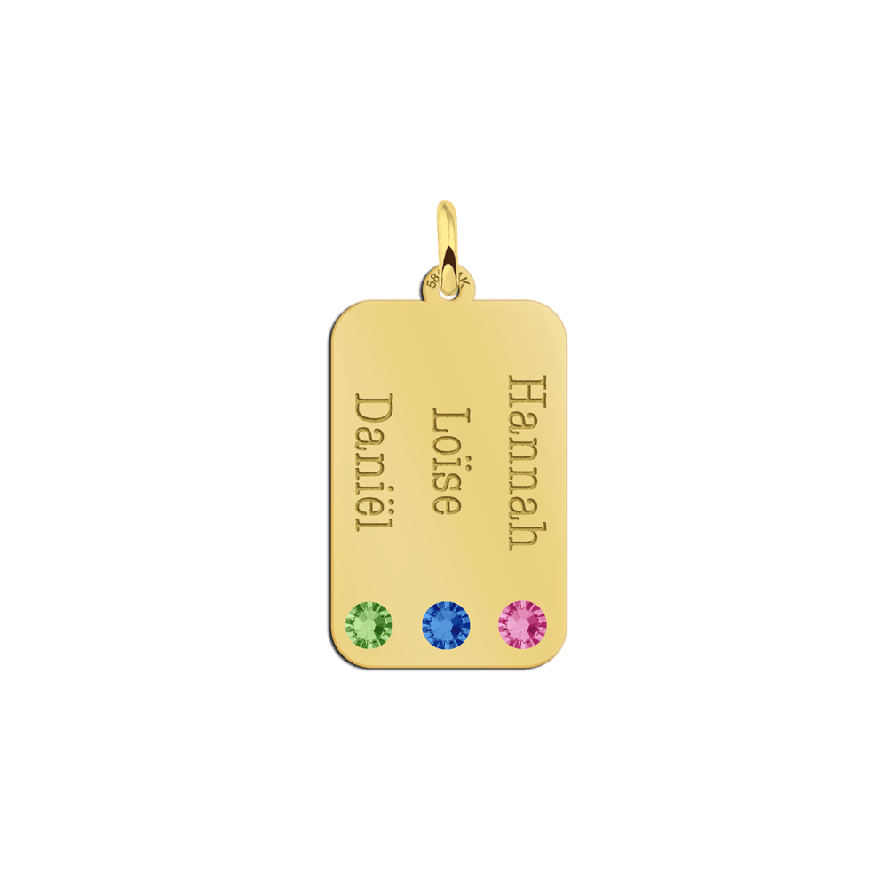 Een stoere 14 karaats gouden hanger met een geboorte steen. Dat is precies wat je hier ziet. Of geboortestenen…, want dat kan uiteraard ook. Wil jij de namen van je kinderen in deze 0,4 mm hanger van goud met ieder een eigen geboorte steen?