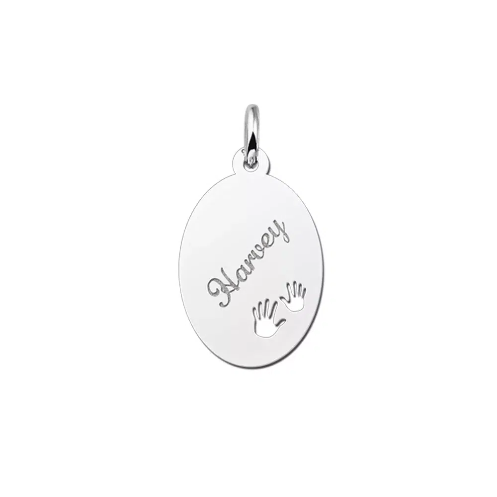 Wat schattig is dit toch!! Een hanger van zilver met twee handjes en wij graveren de naam van je kindje erin. Dat is wel heel speciaal!