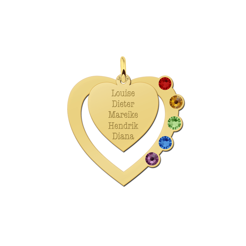 Dit is een schitterende hart hanger met geboortestenen in 14 karaats goud.
