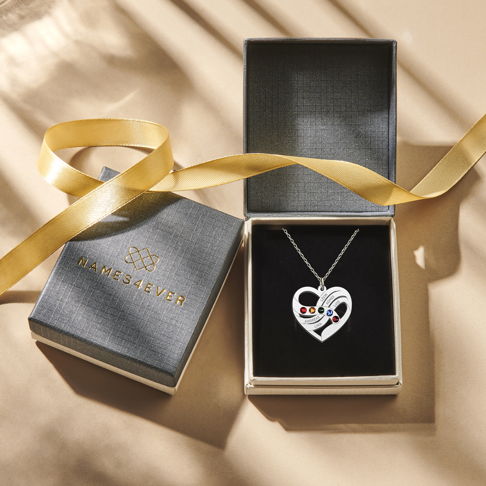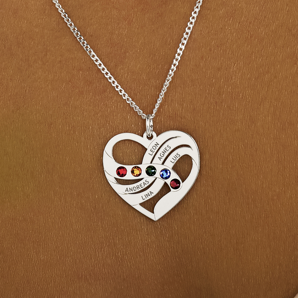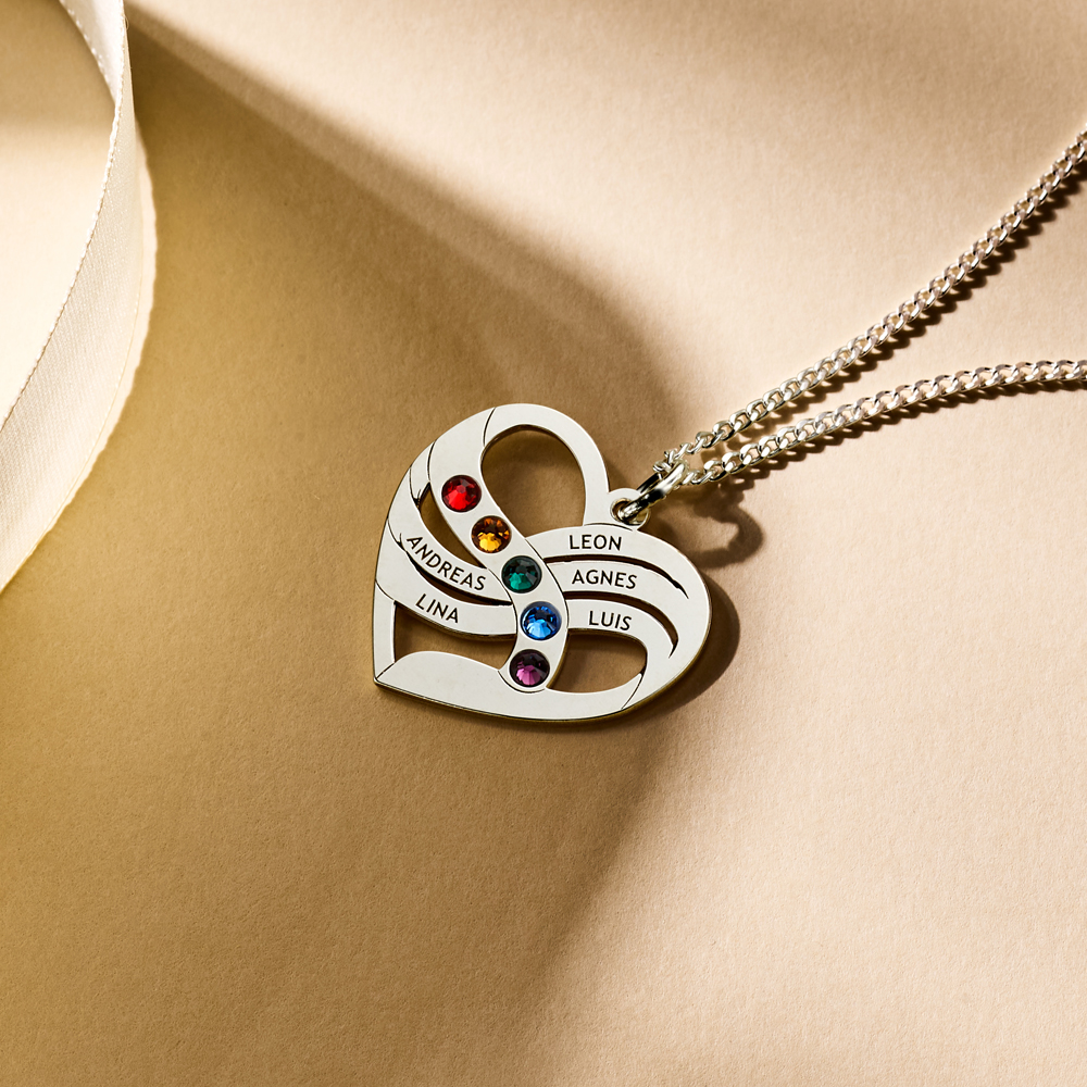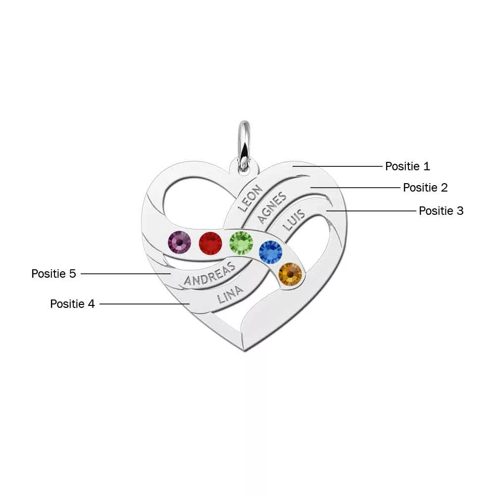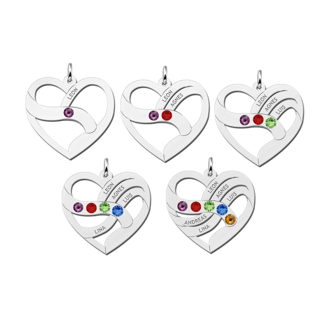 Een mooie hart hanger met geboortesteentjes. De hanger is gemaakt van 925 sterling zilver en kan op verzoek worden gepersonaliseerd.