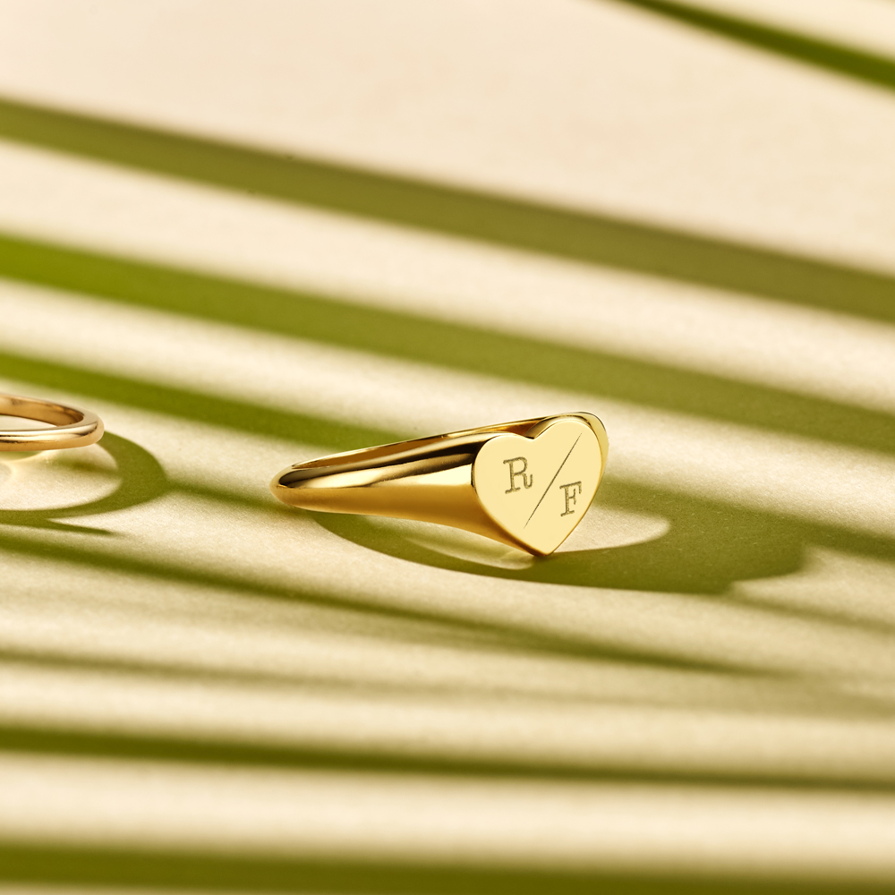 Gegraveerde hart zegelringen voor dames in 14 karaat goud. Een trendy modeaccessoire voor elke outfit en met een speciale betekenis voor jezelf. Je kunt kiezen uit de maten 16 – 19 mm. Wil je de ring cadeau geven? Dat komt mooi uit! Je ontvangt deze namelijk in een mooi sieradendoosje.