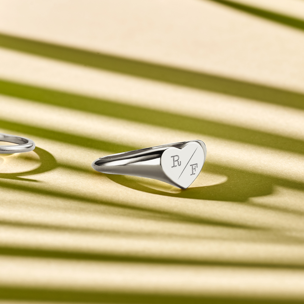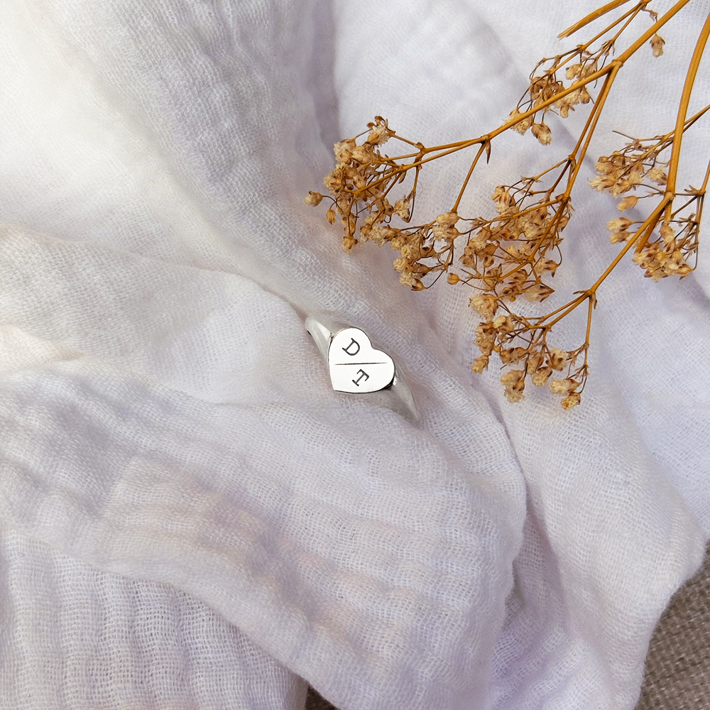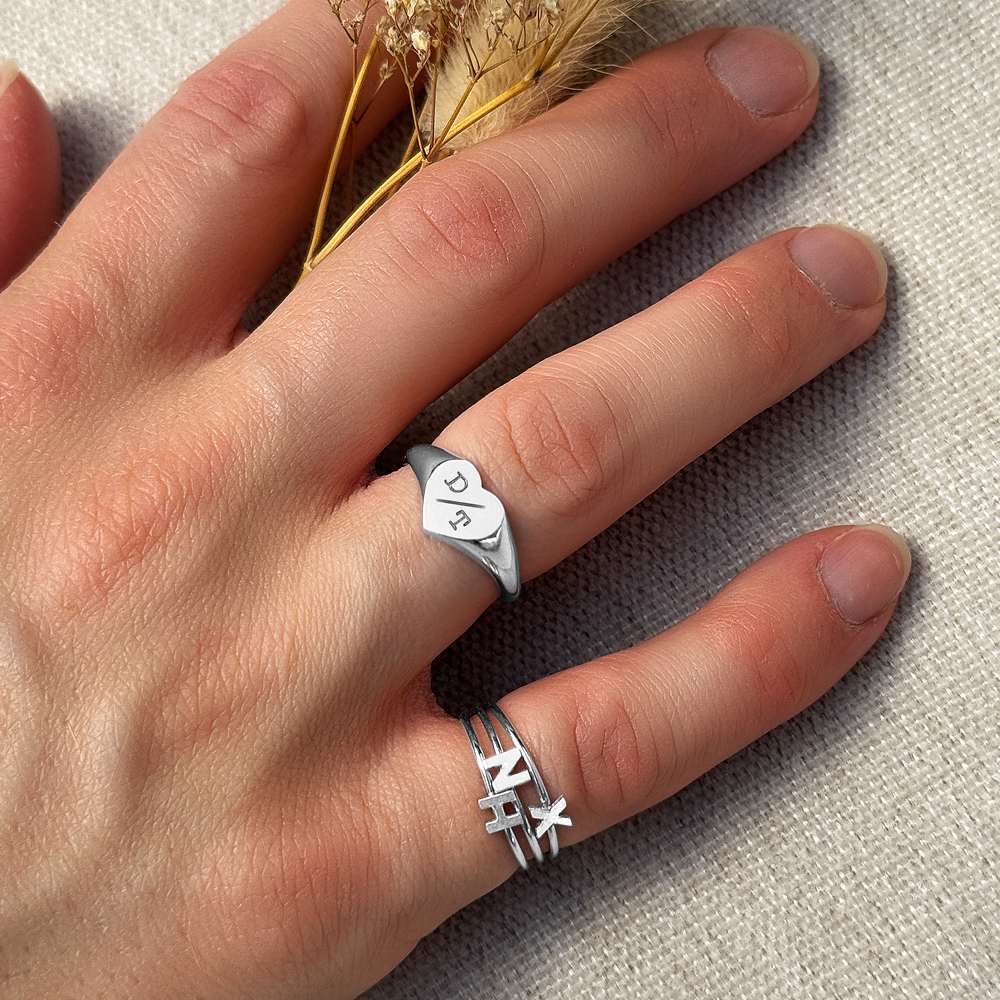 Hartvormige zilveren zegelring met twee initialen