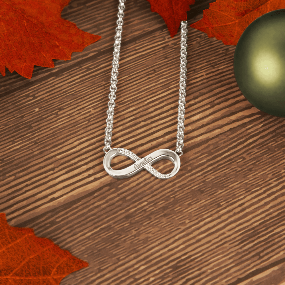 Het oneindigheidsteken is een prachtig symbool dat twee mensen verbindt. De zirkonia’s geven dit prachtige symbool een extra sprankeling.