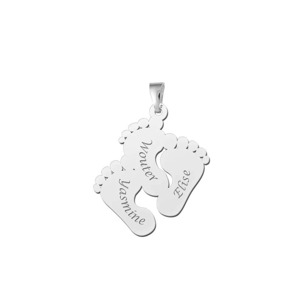 Deze schattige voetjes hanger kan gepersonaliseerd worden met maar liefst drie namen. Welke namen laat jij graveren?