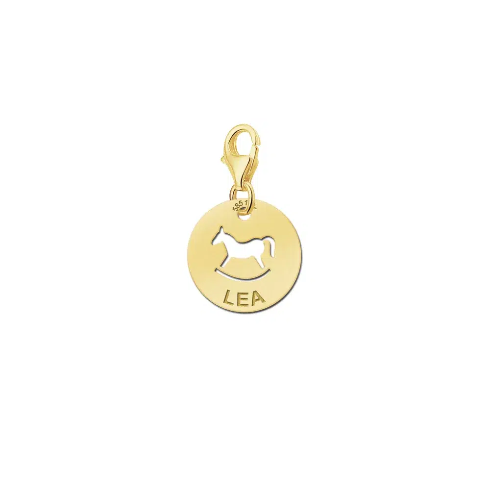 Op zoek naar een blijvend aandenken? Dat kan met deze 14 mm ronde gouden naambedel wiegje voorzien met de naam van jouw keuze. Door de karabijnhaak aan de hanger, kan je de naambedel makkelijk aan een armband of collier hangen. Het materiaal waar wij de naambedel van maken is 0,4 millimeter dik. Snelle levering en je betaalt geen verzendkosten!