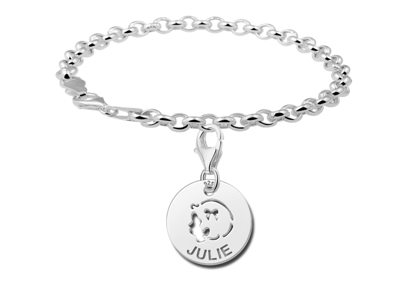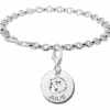 Hoera een meisje geboren! Deze 14mm ronde zilveren naambedel baby met babyhoofdje meisje wordt voorzien met de naam van jouw keuze. Iets dat je zo ontroert verwarmt en verwondert… Door de karabijnhaak aan de hanger, kan je de naambedel makkelijk aan een armband of collier hangen. Snelle levering en je betaalt geen verzendkosten! De armband is apart verkrijgbaar.