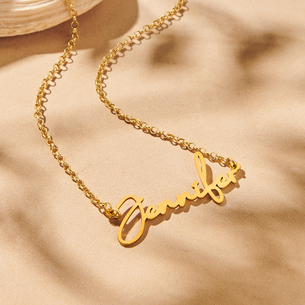 Wees uniek met je eigen naamketting Deze naamketting van goud heeft een erg mooi lettertype, waardoor het een unieke naamketting wordt. Helemaal wanneer ie met jouw eigen naam gegraveerd is. De naamketting is gemaakt van 14 karaat goud en kan met een naam van max. 12 tekens gepersonaliseerd worden. Het plaatje is in dit voorbeeld 43 mm x 15 mm, dit is slechts indicatief en per naam verschillend. De dikte van het plaatje is 0, 4 mm. Je kunt er een passende ketting bij kiezen.