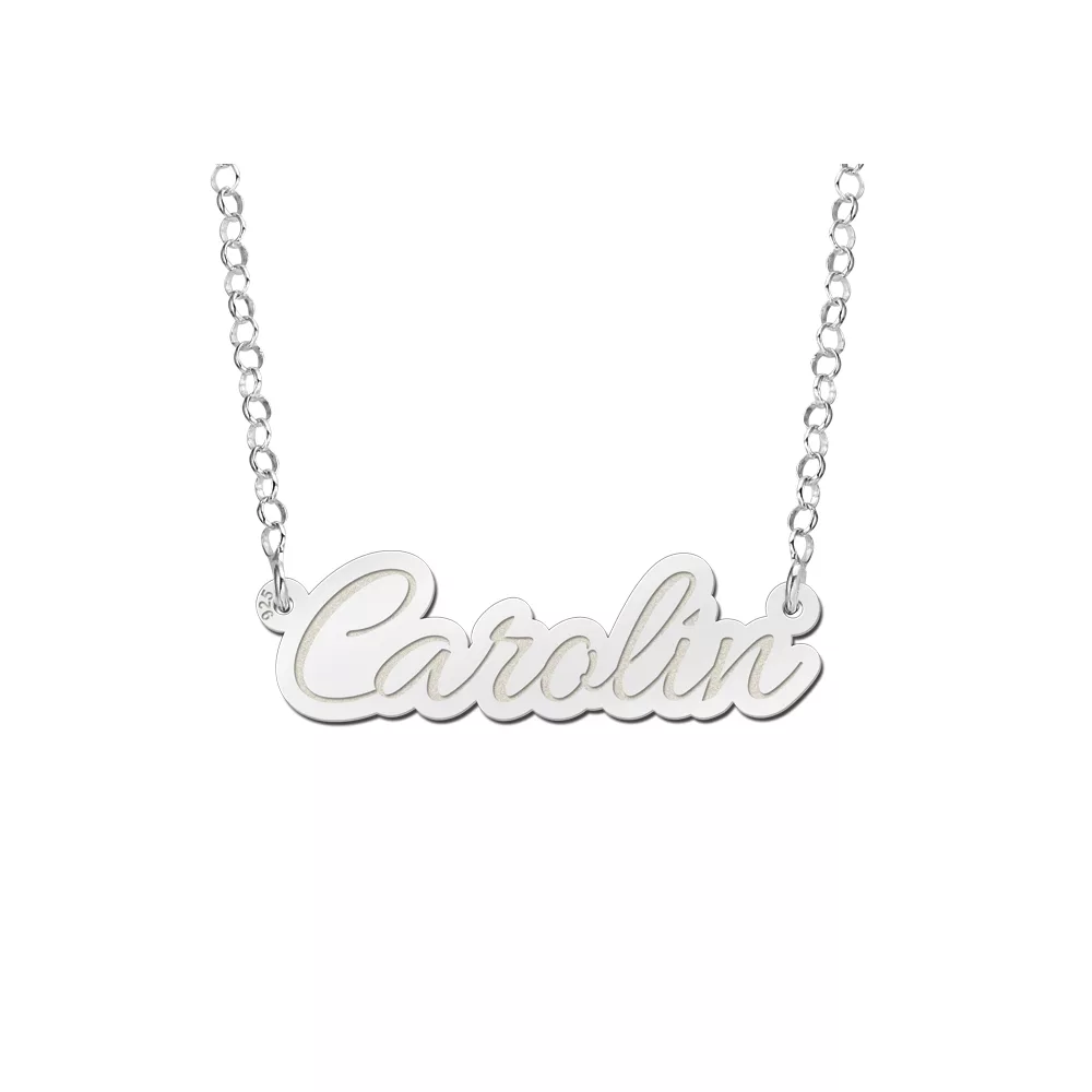 Maak dit sieraad uniek en persoonlijk Deze naamketting zilver heeft een sierlijk lettertype en past bij elke outfit. De ketting is gemaakt van echt 925 sterling zilver en het naamplaatje heeft een dikte van 0, 7 mm. Je kunt kettinglengte 42 cm en 50 cm kiezen. De afmeting van de naam in het voorbeeld is 30 mm x 10 mm. Dit is slechts indicatief en hangt van de naam af.