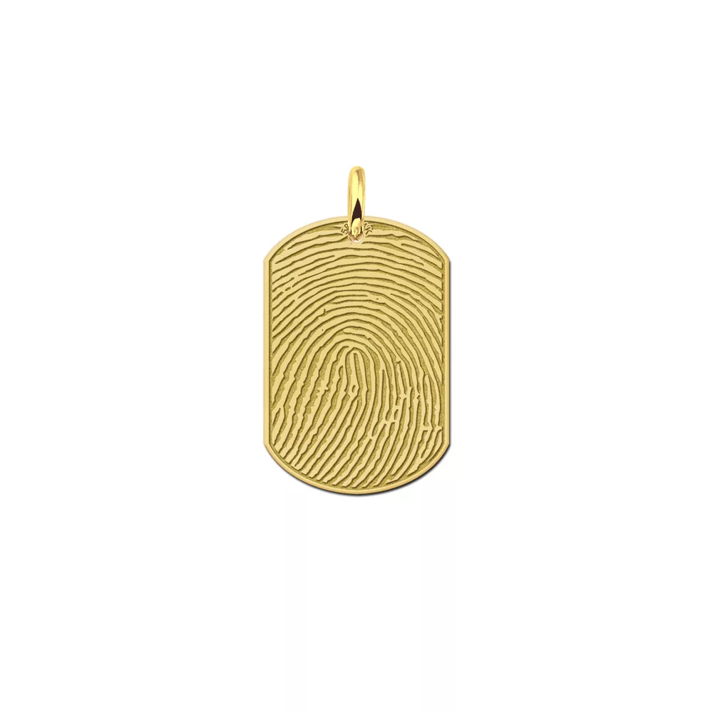 Een dogtag vingerafdruk hanger met gepersonaliseerde lasergravure. Hoogglans en gepolijst hanger met afgeronde hoeken. Een echte blikvanger voor alle mannen.