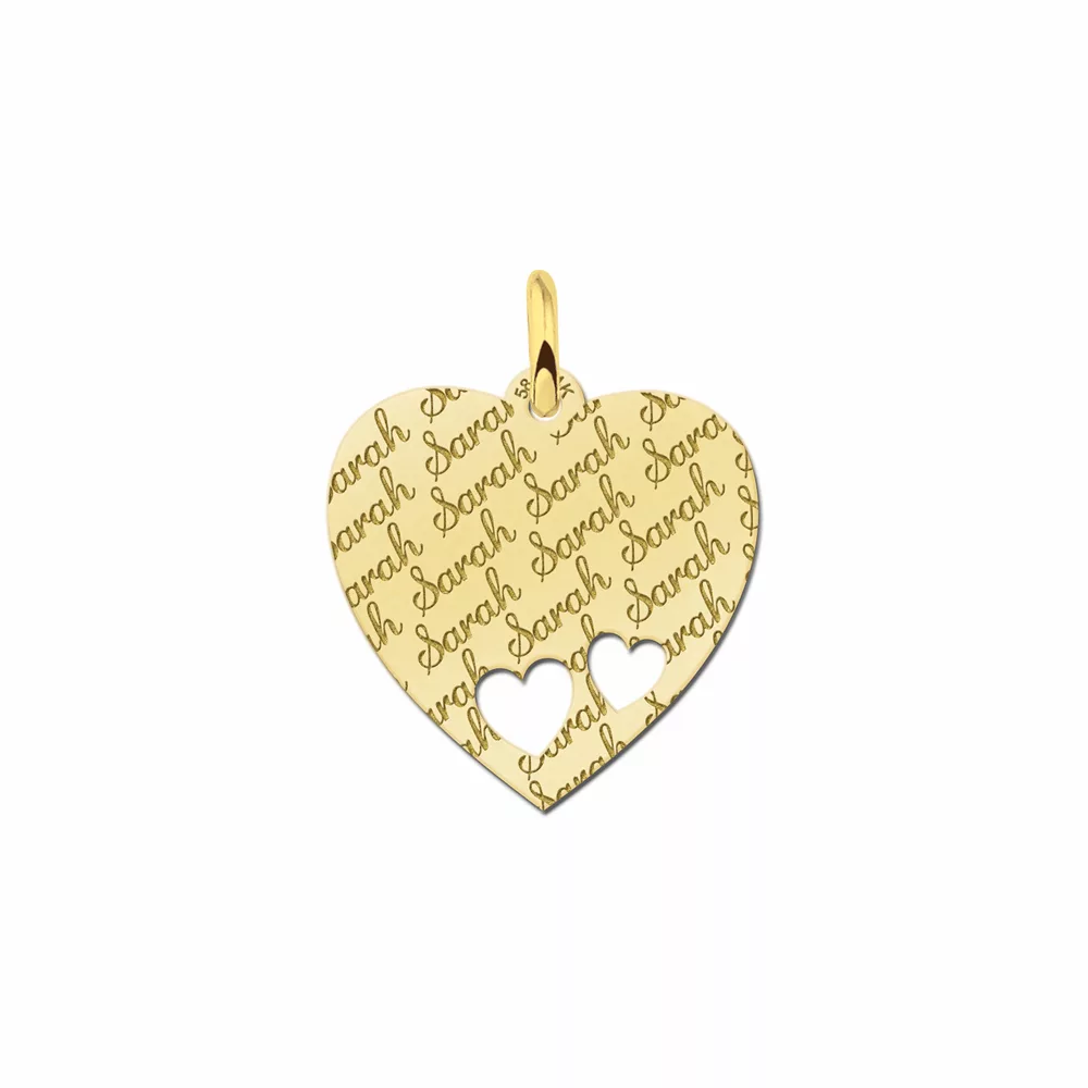 Het goud hart met naamgravure dat wij leveren is ca. 19 x 19 millimeter groot en is voorzien van maar liefst 2 uitgesneden hartjes.