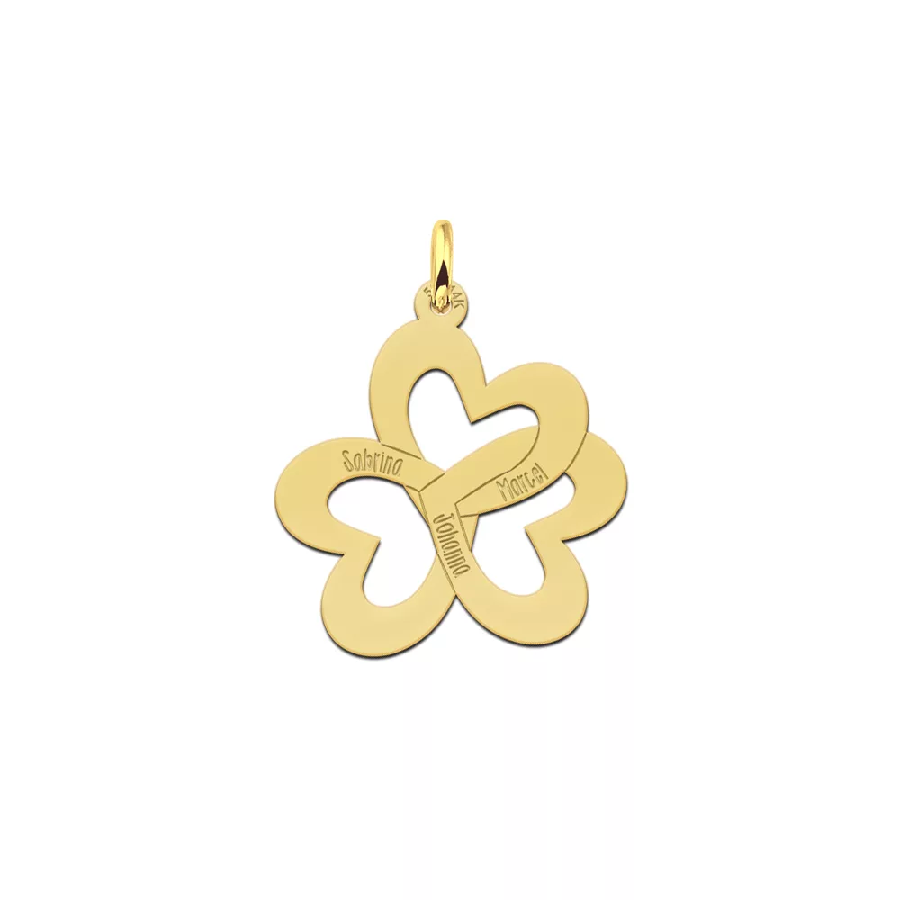 Deze hartjes ketting heeft drie hartjes in één en kan gepersonaliseerd worden met drie namen.