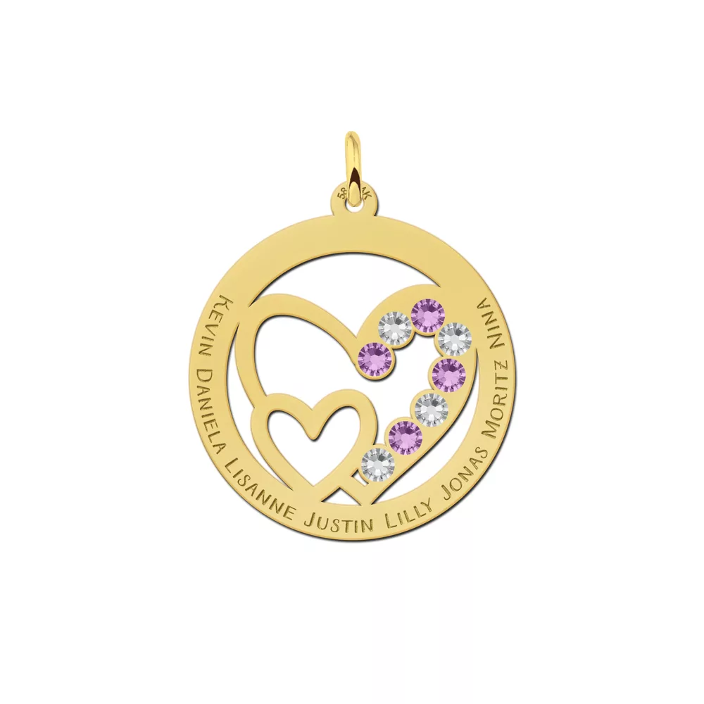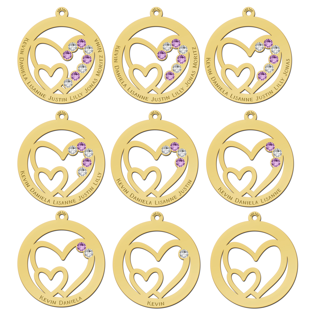 Deze hanger is bijzonder geschikt voor iedereen die een grote familie heeft en alle leden in ййn hanger wil laten vereeuwigen. Een mooie hartvorm completeert de hanger bezet met Swarovski-stenen.