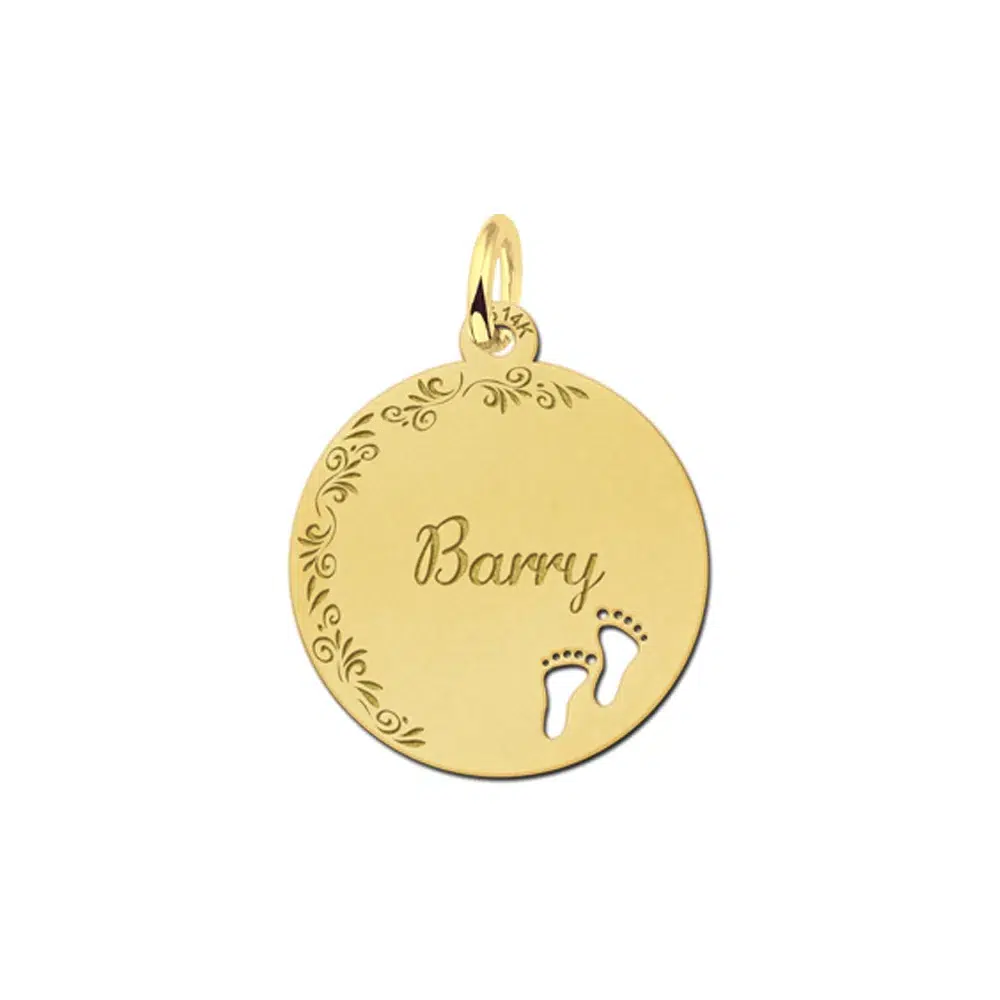 Het gouden hangertje voor je naam is rond en is ca. 19 x 19 mm groot. Het heeft een schattige en smaakvolle bloem gravure en dat maakt het juist zo subtiel !! Het hangertje van goud is voorzien van twee voetjes en daarom is het wellicht een leuk idee om de naam van je kindje er in te laten graveren. Jouw naam naar keuze wordt er in sierlijke letters in gegraveerd. Vergeet niet een bijpassende 14 karaats gouden collier mee te bestellen !!