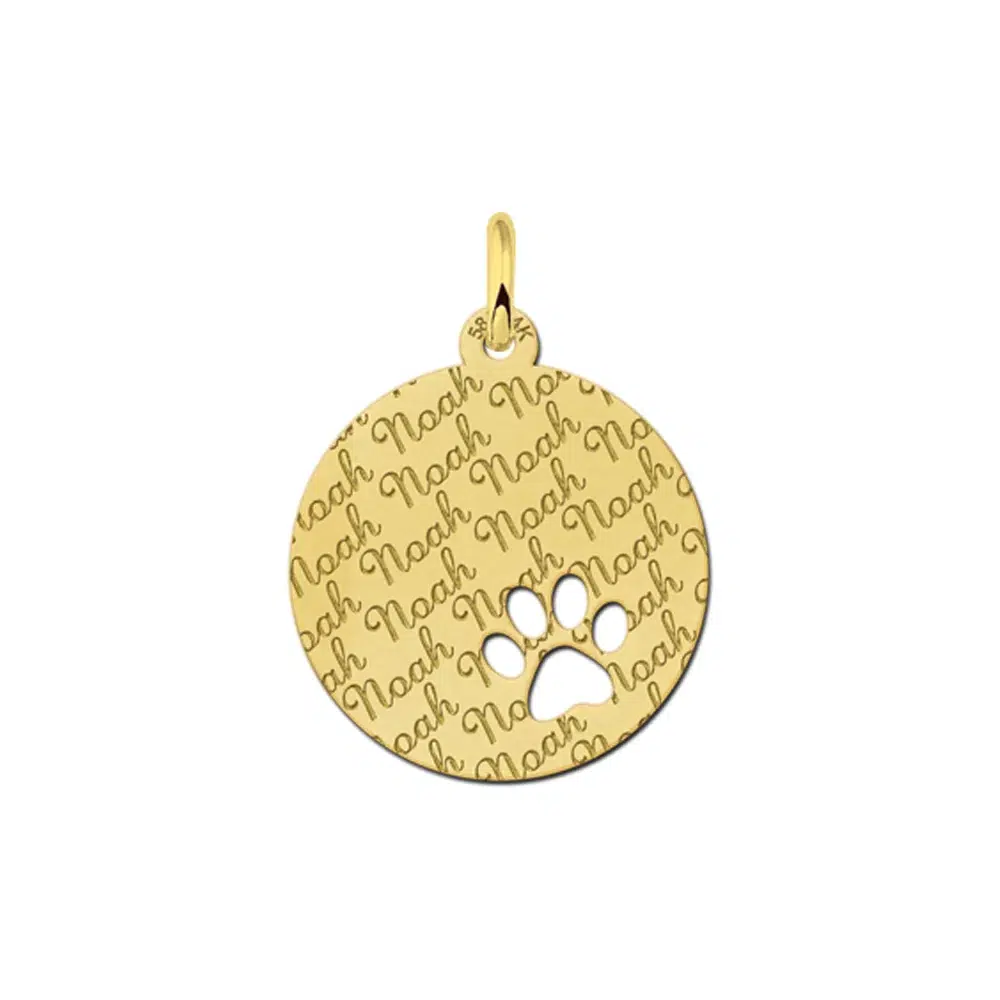 Misschien wil jij jouw huisdier wel heel de dag om je heen hebben, maar kan dat niet ?! Wij hebben hier voor jou de oplossing ! Met dit gouden hangertje draag je jouw viervoeter heel de dag bij je. Laat het beestje zijn naam in de hanger van goud graveren en je hebt je kamerraadje heel de dag bij je. Bij dit plaatje komt de naam telkens terug. Dat is toch heel liefdevol. De afmeting is 19 x 19 mm.