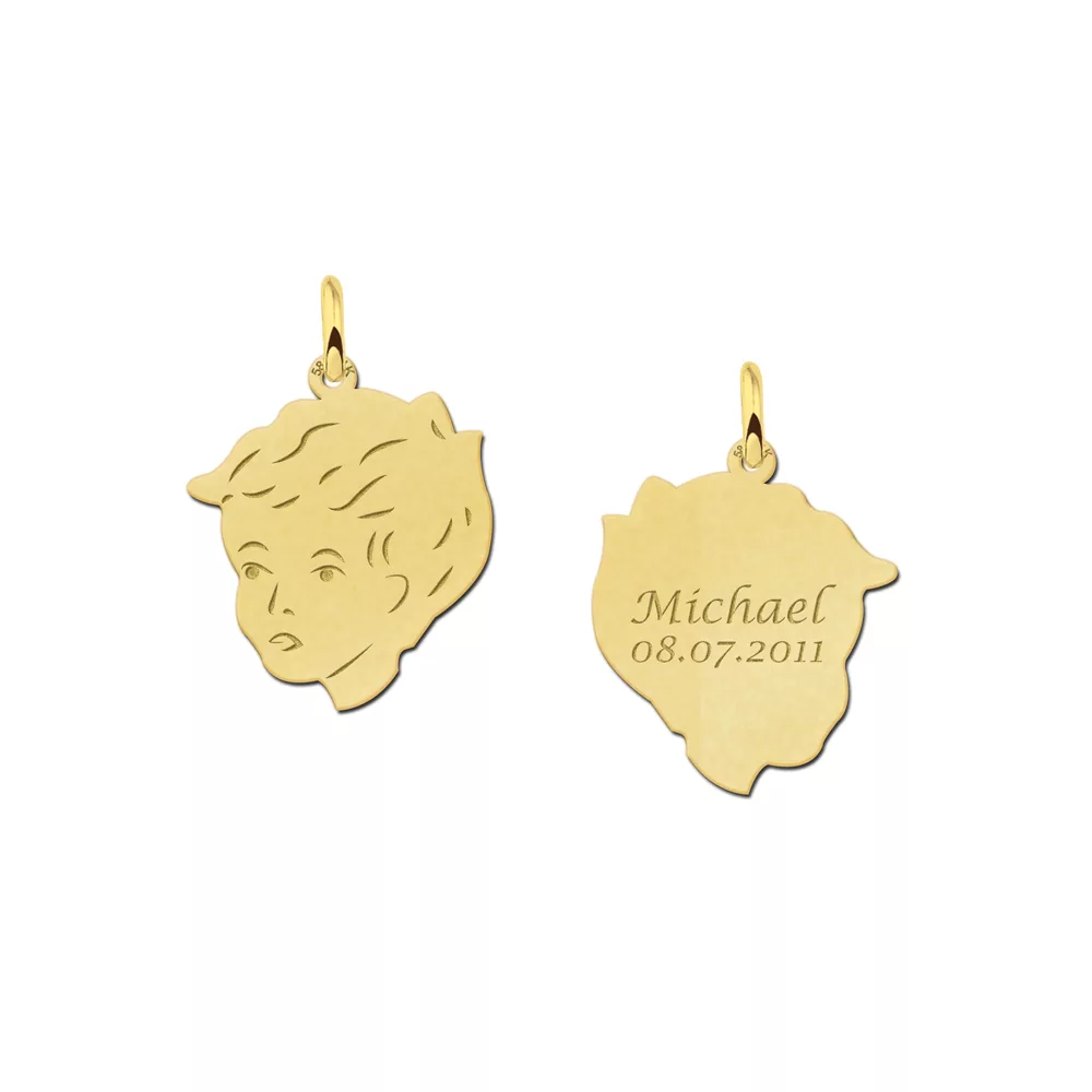 Deze moeder kind hanger heeft een vorm van een jongens kinderkopje goud. Zo draag je jouw kind altijd dicht bij je. De achterkant kan worden gegraveerd met de naam en de geboortedatum van het kind.
