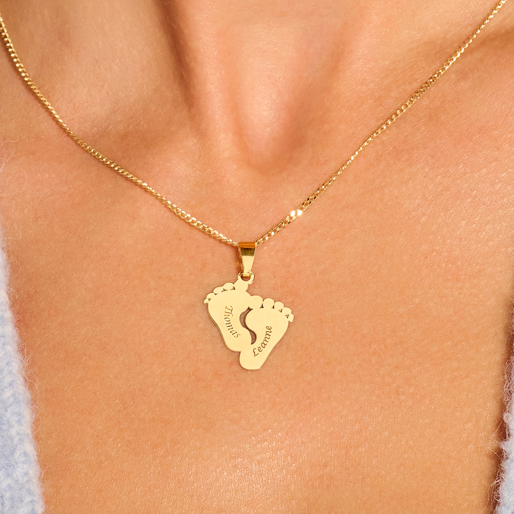 Mooie 14 karaat gouden hanger met voetjes voor alle trotse mama’s en lieve oma’s. Te personaliseren met jouw eigen gravure.