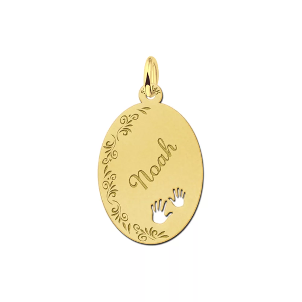 Graveren in dit gouden naamplaatje ?! Fantastisch toch ?! Het naamplaatje is van goud en is 16 x 22 mm en heeft een beeldige bloem gravure ! Het gouden naamplaatje voor je naam gravure heeft 2 beeldige handjes. Het zou dus perfect zijn om de naam van je kindje hierin te laten graveren,die zullen wij dan in sierlijke letters er voor je in graveren. Vergeet niet een bijpassende gouden ketting, in de juiste lengte mee te bestellen !!