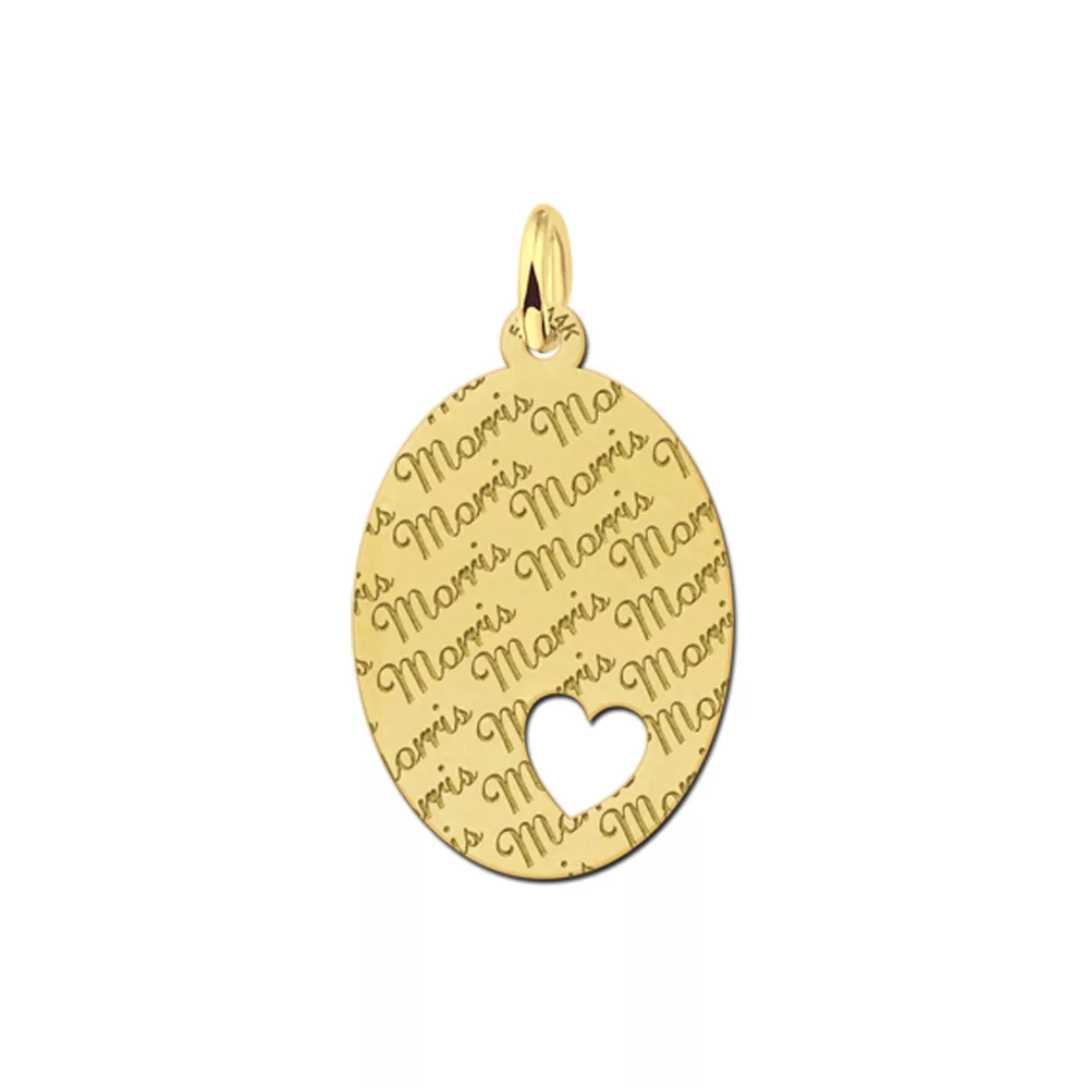 Het ovale gouden naamplaatje waar je een naam in kunt laten graveren wat je hier ziet is ca. 16 x 22 mm groot.