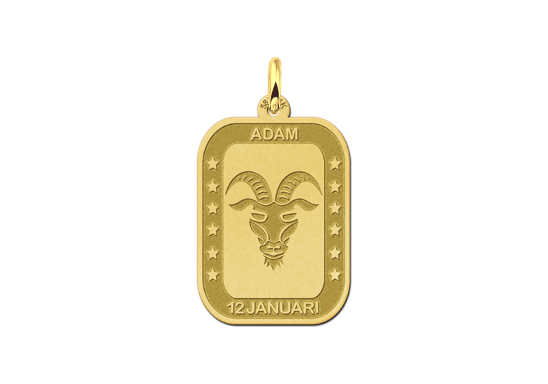 Op deze sieraad is het sterrenbeeld Steenbok gegraveerd. De Steenbok geborene is een mens met een praktische en zakelijke wil.