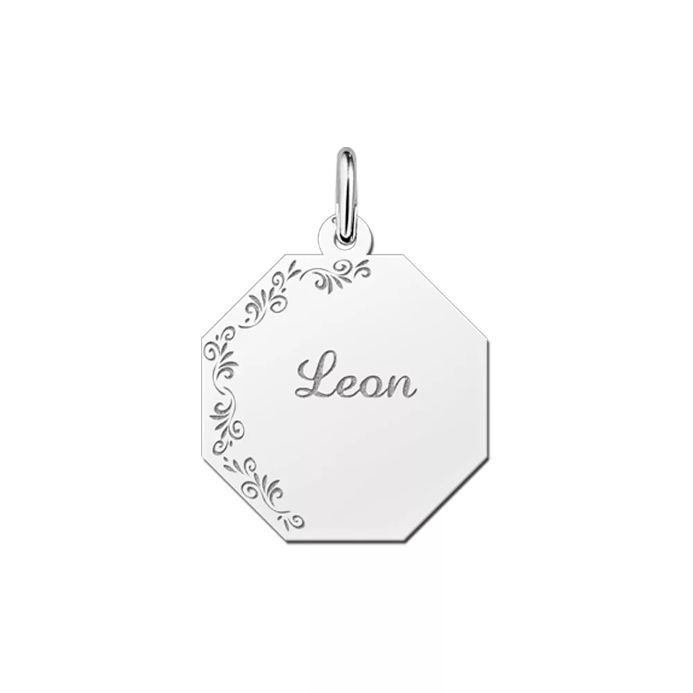 Deze graveerplaat met je naam gravure is schitterend versierd met een elegante bloemetjes rand. Wat een charmante ketting kan jij maken van deze graveerplaat met je naam gravure. Met een elegante, sierlijke letter kunnen we jouw graveerplaat compleet maken. Geef dus de naam op van jouw keuze voor de gravure en wij maken er iets heel moois van. Deze zilveren graveerplaat heeft een doorsnede van 19 x 19 mm. Bestel er een mooie zilveren ketting bij en jouw graveerplaat met naam gravure is compleet.